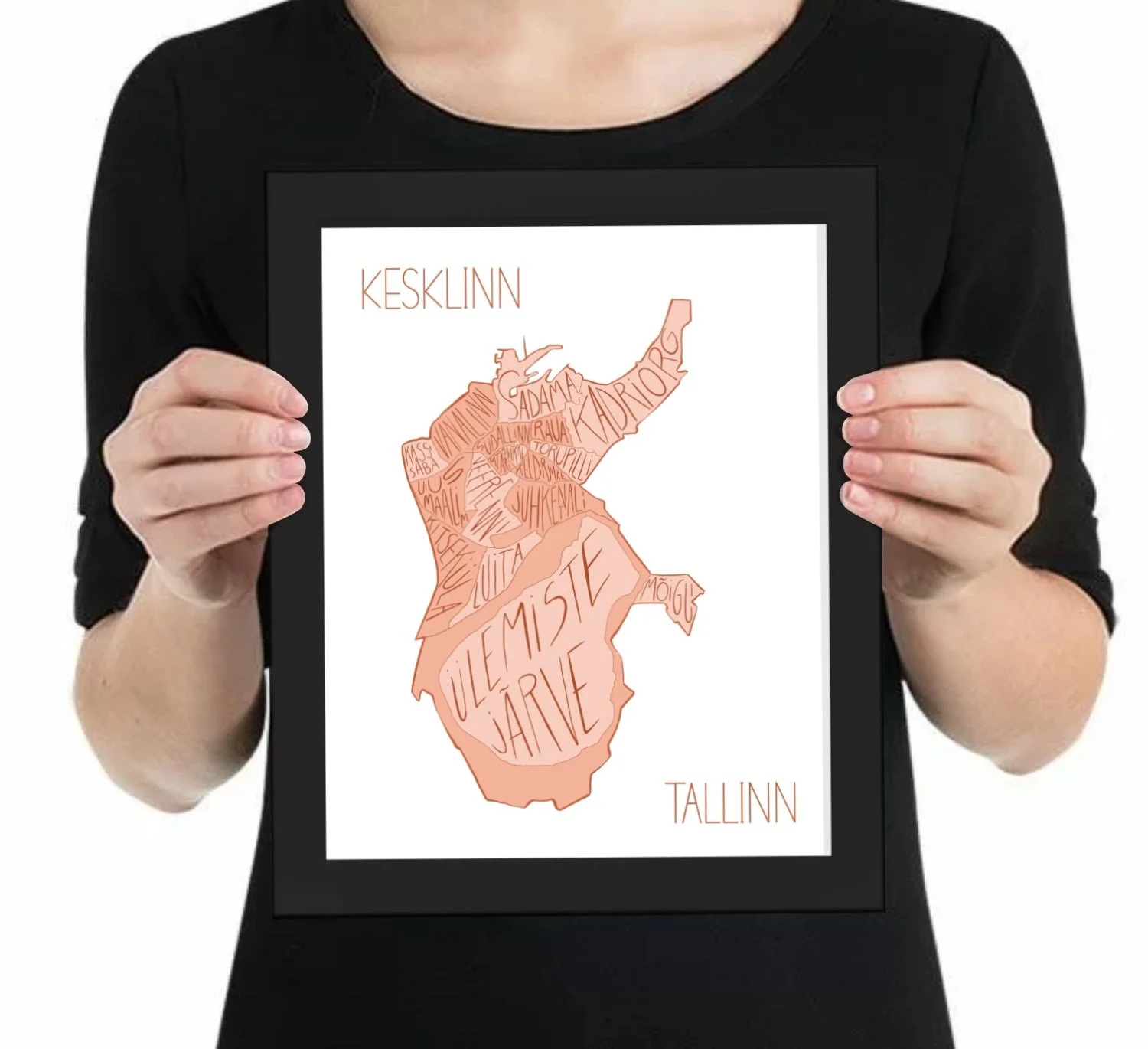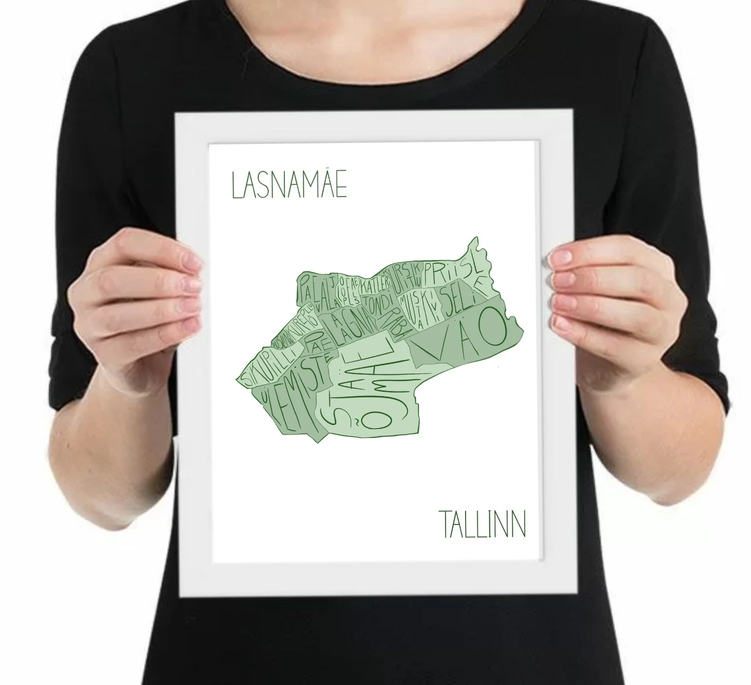 Crafted by our skilled artist, these frames, available in black or white, feature a burst of colors capturing the essence of Pohja-Tallinn, Kesklinn, Pirita, and more.